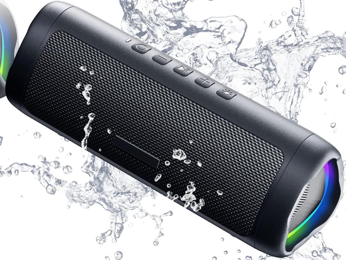 With its dual drivers, you’ll experience rich, detailed sound with minimal distortion. The Bluetooth speaker with 24-hour battery life ensures that your music lasts all day and night. It’s ideal for long events or outdoor activities, as its IPX5 waterproof rating provides protection against water splashes and spills, making it perfect for outdoor use.